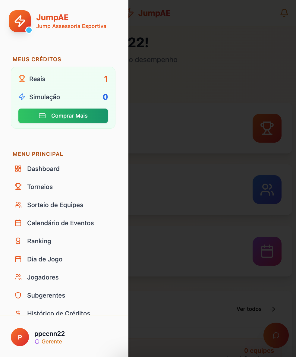 O Sistema de Gestão de Torneios JumpAE traz uma solução completa e personalizável para sua competição amadora ou profissional! Sistema de sorteios seguro, gestão desde o cadastro ao pagamento.